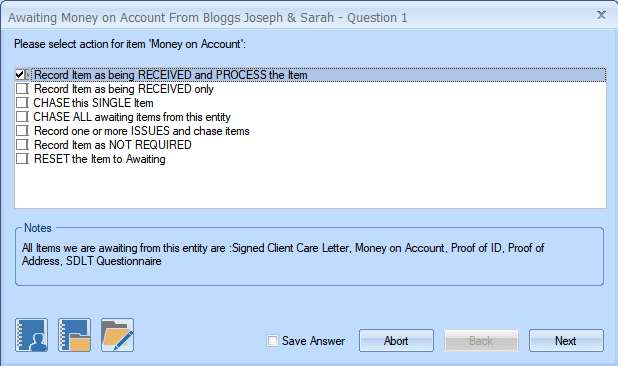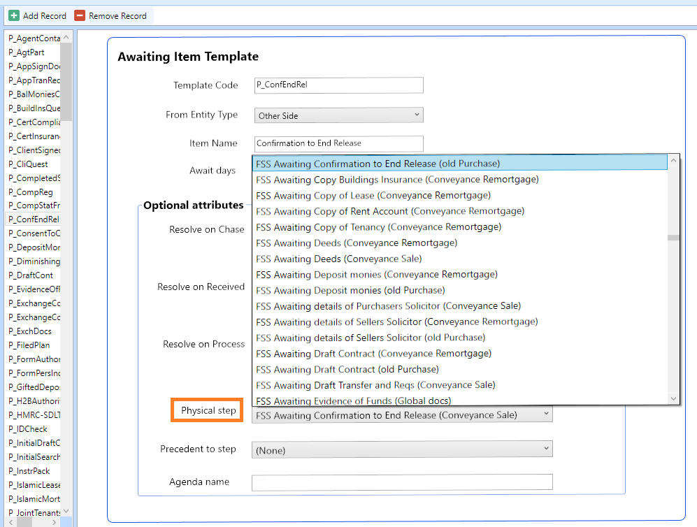 - Multiple Precedent Items : Prevent certain steps from being taken until specific Items have been received : Each Item can be assigned as a precedent to any step (such as a domestic conveyancing Exchange Contracts step)